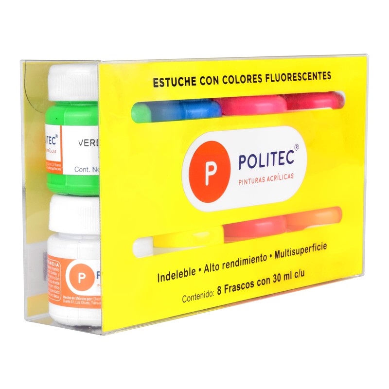 Set Con 8 Piezas De Acrilico Politec 30ml Neon