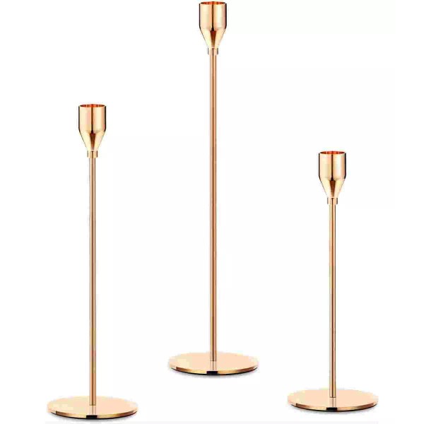 Los portavelas son resistentes, resistentes al óxido y duraderos, y tienen bases pesadas para que no se derrumben fácilmente. Cada portavelas cónico tiene un fondo de espuma que no rayará las superficies de la mesa.