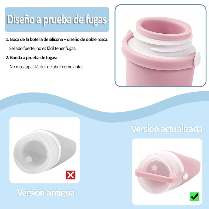 - A PRUEBA DE FUGAS:Banda de silicona de grado alimenticio, a prueba de fugas, buen sellado, no tendrá fugas incluso cuando se pone la bolsa y la maleta al chocar, buena elasticidad.