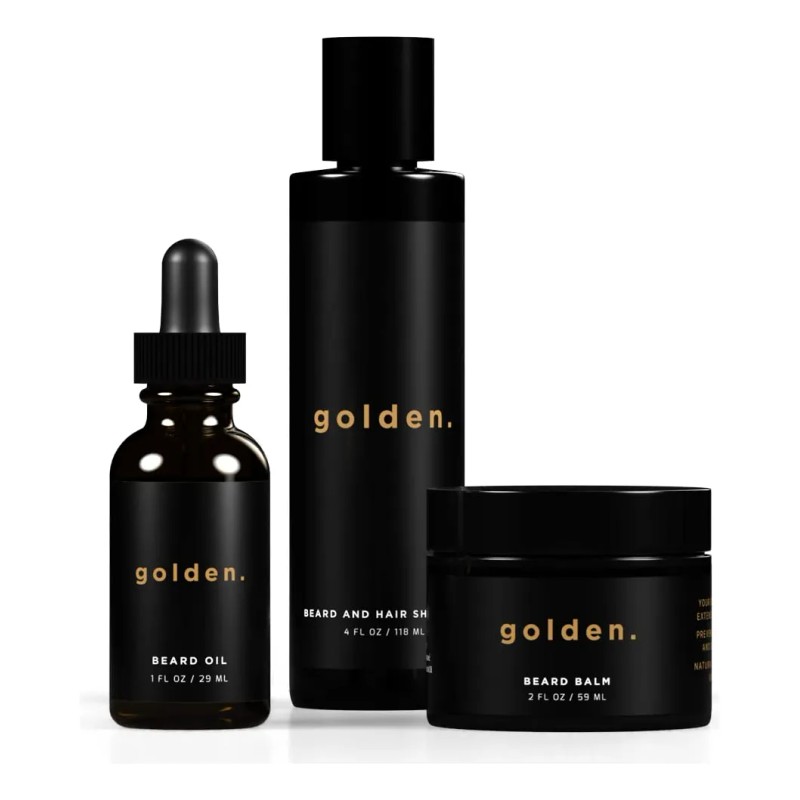 Golden Grooming Co. Set completo de cuidado de barba Everyday Beard Bundle | Incluye aceite, bálsamo y champú para barba (normales, frescos). Cuidado todo en uno: este paquete de kit para barba tiene todo lo que necesitas para un aceite, bálsamo, champú y una colonia sólida del tamaño de un viaje. Diseñado para hombres que se enorgullecen de su apariencia. - Hidratación profunda: con ingredientes nutritivos como aceite de girasol, aloe vera y mantequilla de mango, nuestros productos hidratan la barba y la piel, Previene la sequedad y la descamación para lograr un aspecto saludable y suave. - Promueve el crecimiento: formulado para impulsar el crecimiento de la barba, nuestro nutriente El champú y los aceites ricos ayudan a fortalecer y acondicionar la barba, reduciendo la rotura y mejorando la plenitud. - Aseo sin esfuerzo: nuestro aceite y bálsamo para barba proporcionan un brillo natural y una fijación ligera, lo que facilita el peinado de la barba sin pesadez ni grasa. - Fórmula suave: adecuados para pieles sensibles, nuestros productos previenen la irritación y el acné de la barba, garantizando que tu rutina de aseo sea cómoda y eficaz.