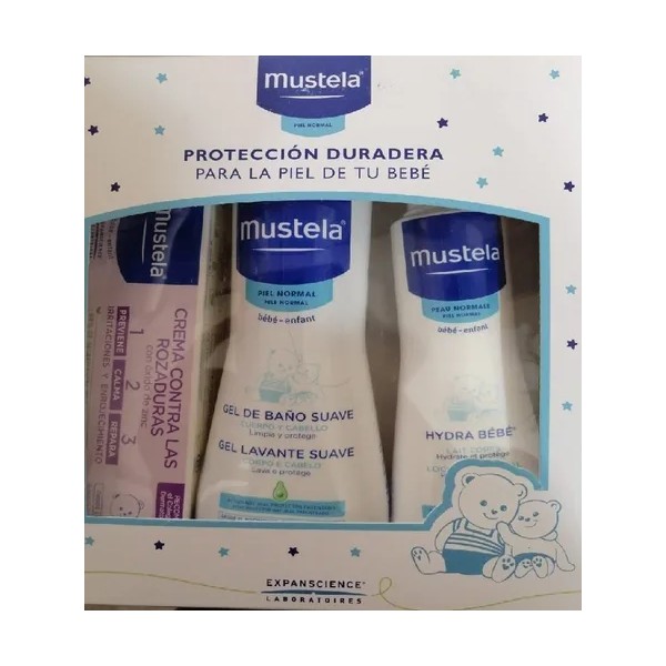 El Set De Cuidado Para El Bebe 3 Piezas Mustela Cc es el complemento perfecto para la rutina diaria de higiene y cuidado de tu bebé. Este kit incluye un gel de baño de 500ml, una loción corporal de 300ml y una crema contra rozaduras de 100ml, todos diseñados para mantener la piel de tu bebé suave, hidratada y protegida. La marca Mustela es reconocida por su compromiso con la calidad y seguridad en productos para el cuidado infantil. Este set no incluye estuche ni cepillo para el cabello, pero ofrece una solución completa con tres piezas esenciales. Ideal para uso diario, cada producto contiene líquido y no tiene fecha de vencimiento, asegurando su durabilidad y efectividad. El set viene en un elegante color blanco y es completamente nuevo, garantizando la mejor experiencia para tu bebé.