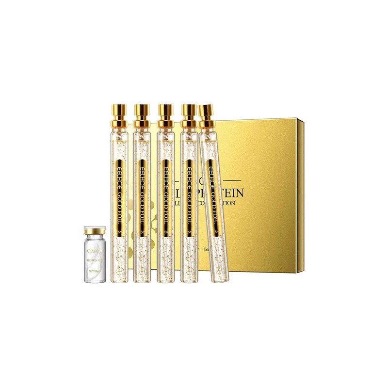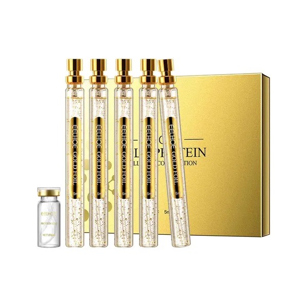 Coloque hebras doradas de proteína en las mejillas, la frente y las líneas de risa y otras áreas deseadas.