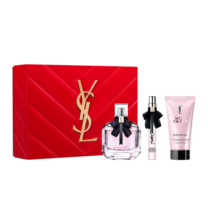 Este conjunto de regalo contiene MON PARIS Eau de Parfum de 90 ml + 10 ml y una loción corporal de 50 ml. YSL presenta, por primera vez, conjuntos de regalo ultra deseables para el Día de las madres #LOVE LOUD. Los regalos definitivos de YSL Love que desearás ofrecer, recibir y compartir.