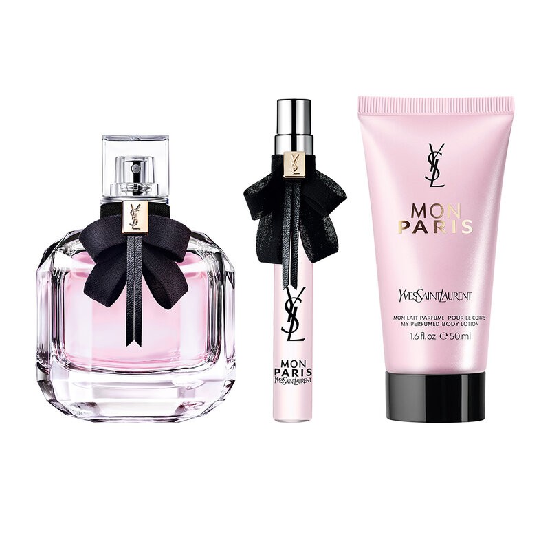 Este conjunto de regalo contiene MON PARIS Eau de Parfum de 90 ml + 10 ml y una loción corporal de 50 ml. YSL presenta, por primera vez, conjuntos de regalo ultra deseables para el Día de las madres #LOVE LOUD. Los regalos definitivos de YSL Love que desearás ofrecer, recibir y compartir.