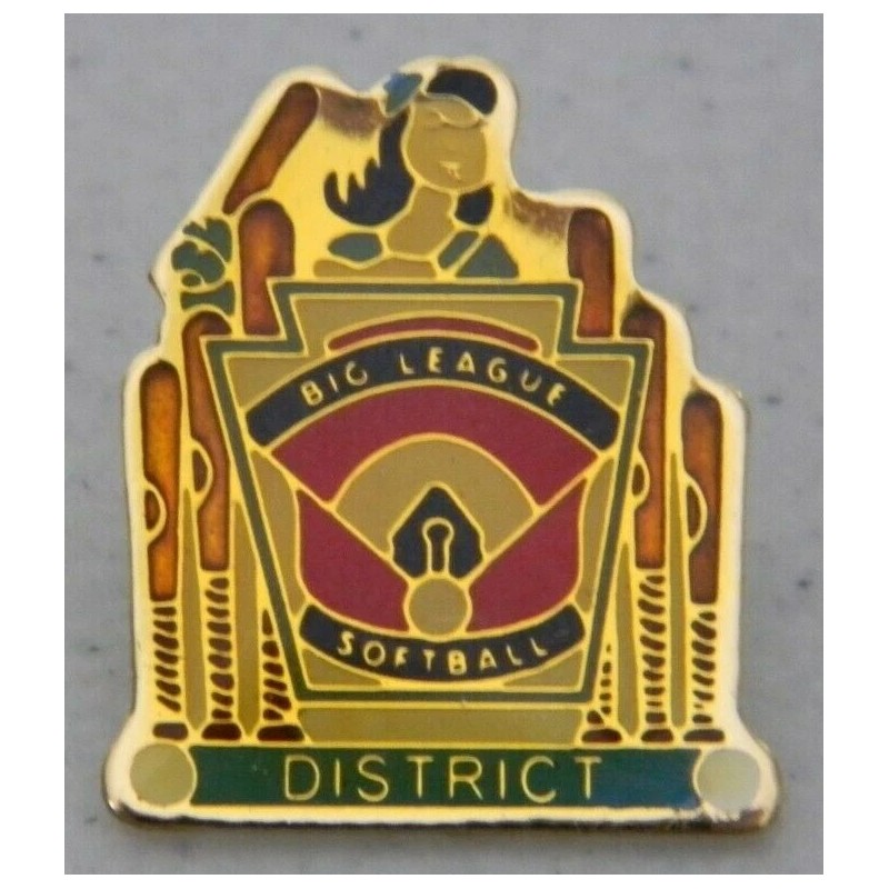 This listing is for a SET OF 10 NEW IN PACKAGE Big League Softball District hat / lapel pin backs. They measure 1" tall by 3/4" wide and have a single post. They are not cheap plastic knock off pins. They are made of TOP quality material.