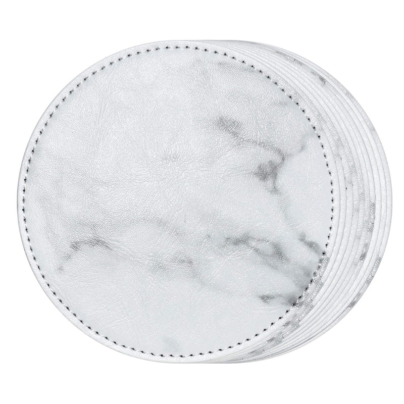 Set of 10 Marble Leather Drink Coasters Round Cup Mat Pad for Home or Bar Use