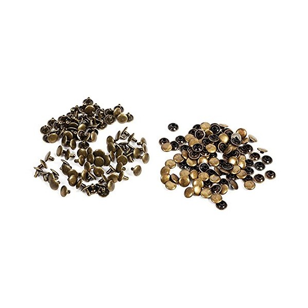 Set of 100 Double Cap Rivets for Leather Craft Repairs Decoration, Hollow Rivets Press Stud Rivets 10 × 8 mm for DIY, Bag, Shoe Repairs (Bronze)