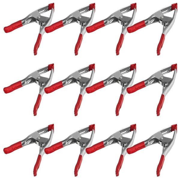 Set of 12-9-Inch Metal Spring Clamp with Red Tip