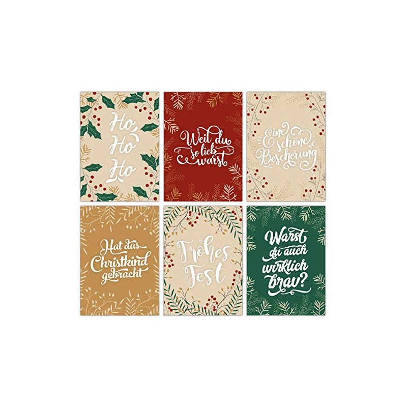 Set of 12 German-language Christmas cards, lovingly designed postcards for Christmas, greeting cards set, Christmas postcard set