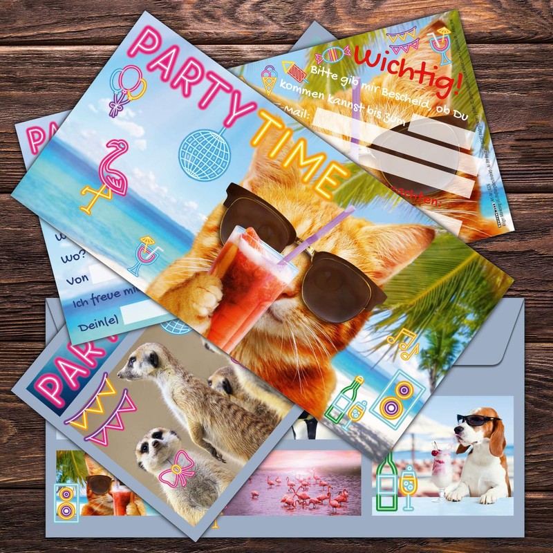 Set of 12 Party Cat Invitation Cards with Envelopes for Children's Birthday or Party – Elegant Invitation for Children, Teenagers and Adults by BREITENWERK