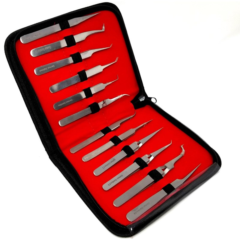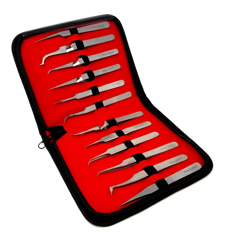 Set of 12 pcs Volume Eyelash Lash Fine Point Tweezers