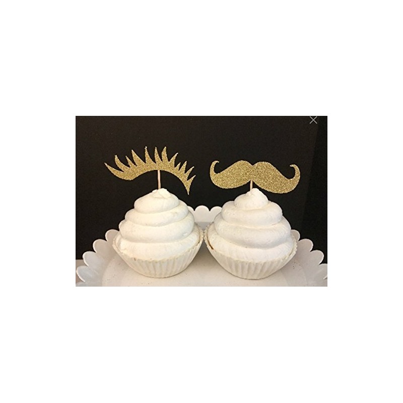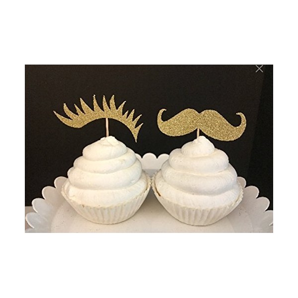 Set of 12 Staches or Lashes cupcakes, 6 Lashes and 6 Staches