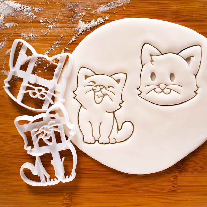 Set of 2 Cat Cookie Cutters (Happy Cat and Cat Face) 2 Pieces Bakerlogy