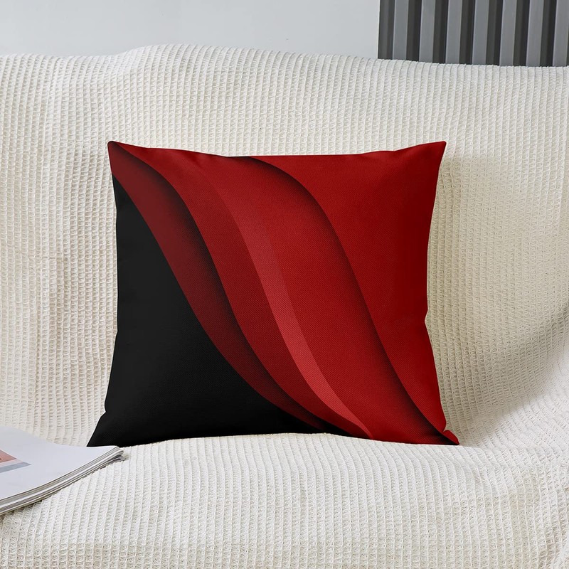 Set of 2 Cushion Covers, Geometry Cushion Covers, 40 x 40 cm, Geometric Stripes, Lines, Decorative Cushion Cover for Home Decor, Reversible, Modern Abstract Art, Red, Black, Throw Decorative Cushion