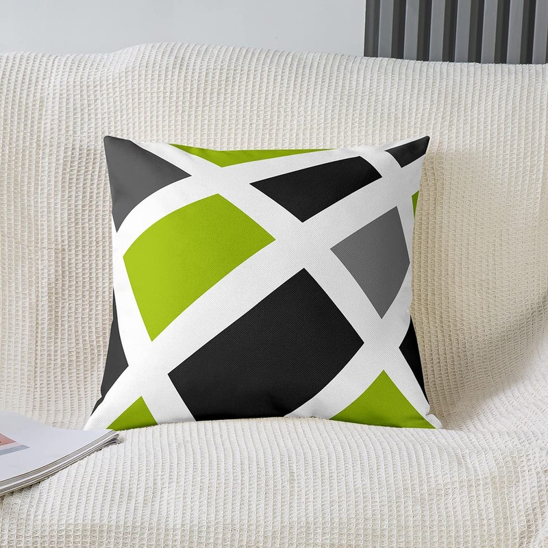 Set of 2 Geometry Strip Lines Throw Pillow Covers Geometric Square Grey Green Black Cushion Case for Home Living Room Decor Reversible Modern Abstract Art Decorative Throw Cushion Case 18x18 Inch