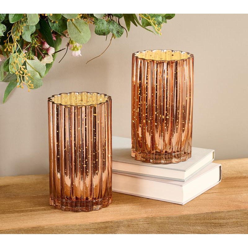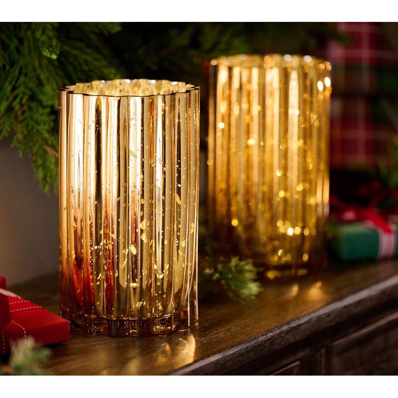- Set of 2 Illuminated Mercury Glass Hurricanes by Valerie