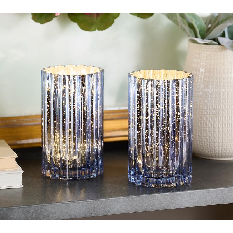 Set of 2 Illuminated Mercury Glass Hurricanes by Valerie:_Midnight