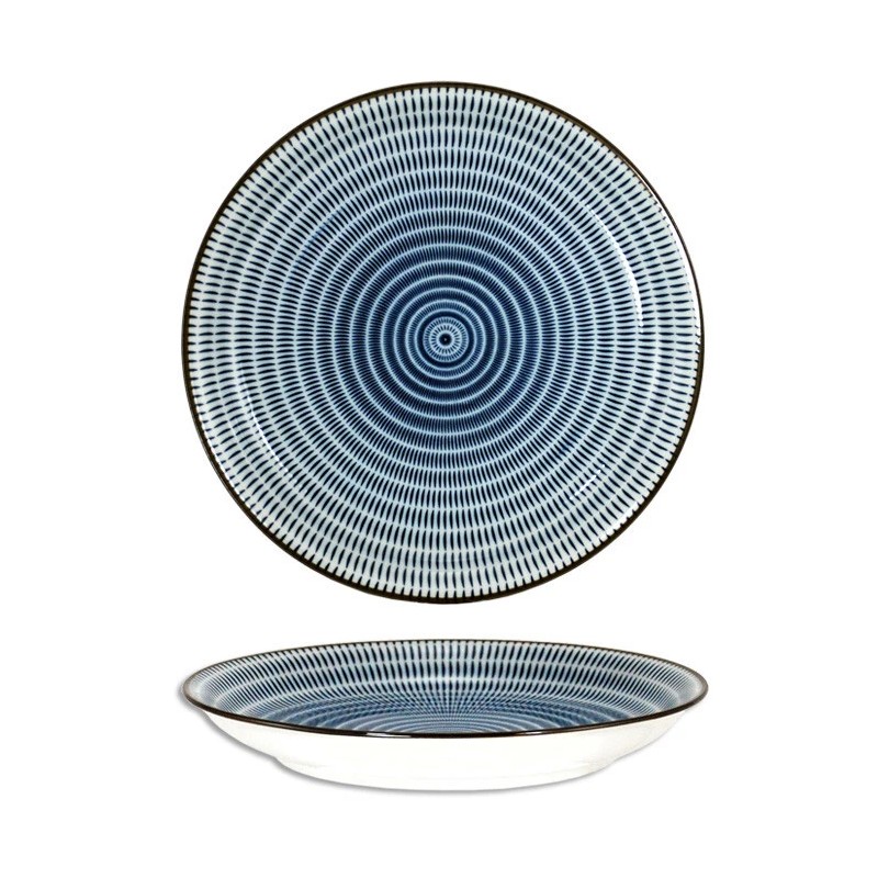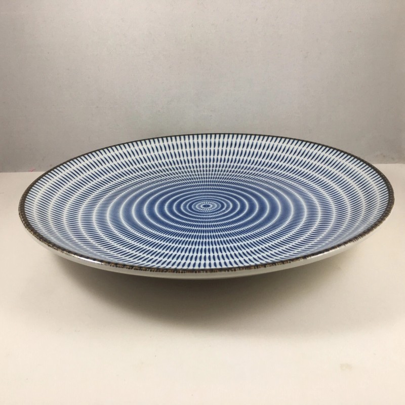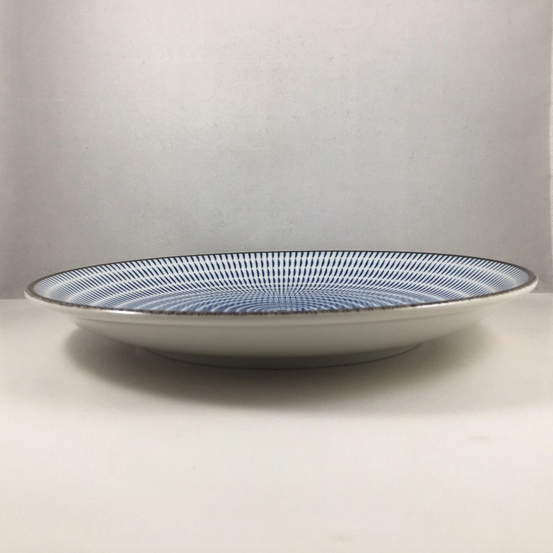 SET of 2 Japanese Dinner Dining Plates Porcelain 10"D Tokusa Lines Made in Japan