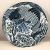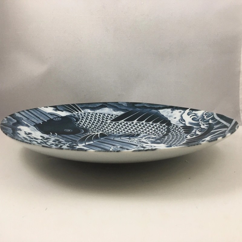 SET of 2 Japanese Dinner Dish Plates 10"D Porcelain Navy Black Koi Made in Japan