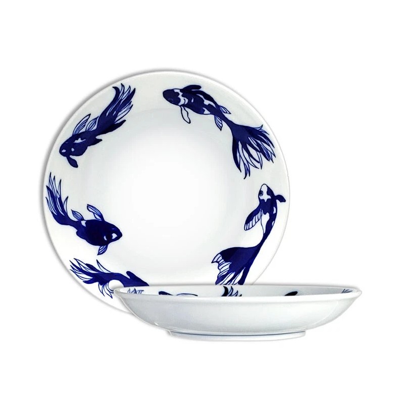 SET of 2 Japanese Dinner Dish Plates 7.75"D Porcelain Goldfish Made in Japan