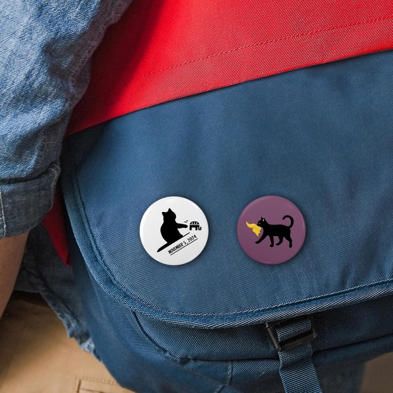 Set of 2 Kamala Harris Campaign Pin, Pack 2 Cat Pushing Republican Party Off A Table Pins, November 5 Pin Button, Funny Political Gift for Democrat, Childless Cat Lady Pin, Voting for Kamala Harris Pins