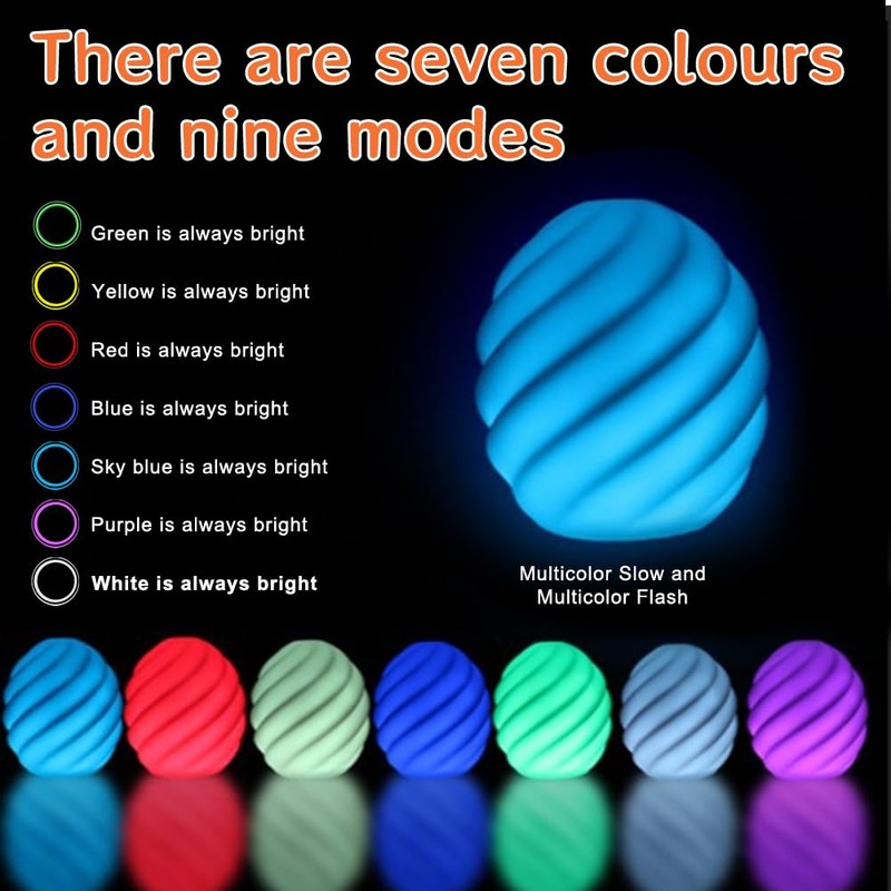 - Many models: there are a total of seven colours and nine modes. Every time you turn off the device and turn it on again, you can change the colour. When the last turn off and turn on again, the device switches to a changing mode with fast flashing, slow flashing and constantly changing light effects.