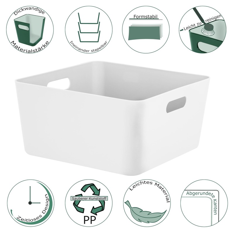 - Material: Robust design with sturdy wall thickness made of durable plastic - clean plastic without harmful substances - PP (polypropylene) - weight: per box approx. 580g