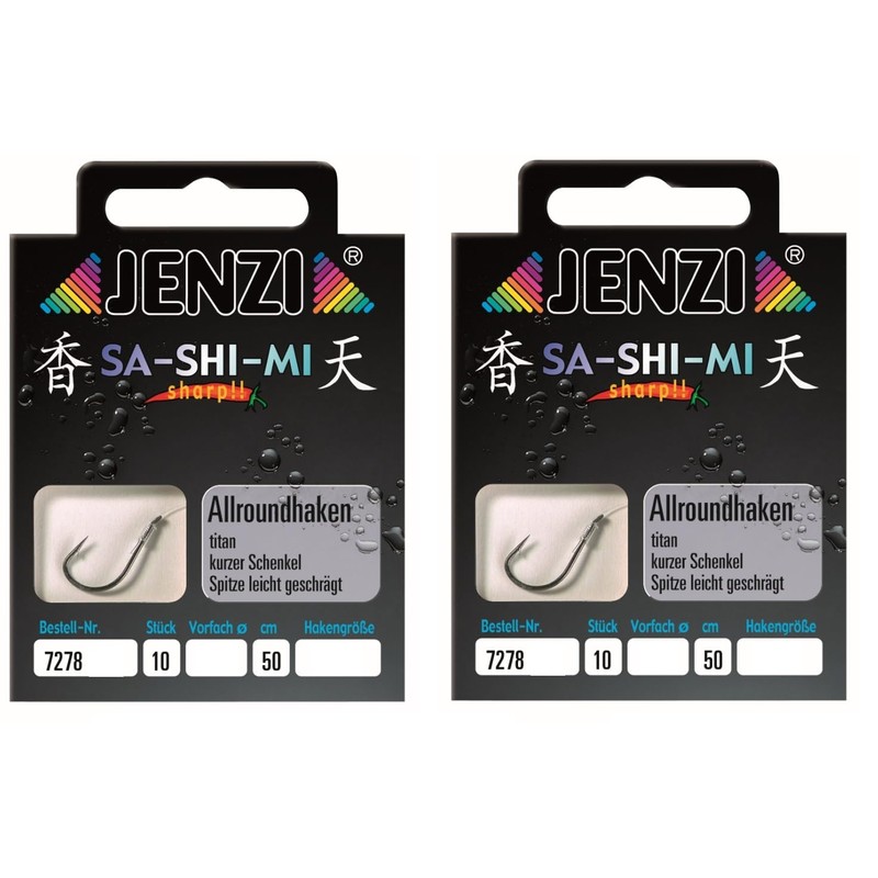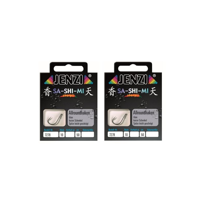 - Set of 2 packs of tied all-round fishing hooks from Jenzi (20 pieces), 50 cm hook size 2, 4, 6, 8, 10, 12, 14 and 16 depending on selection + free Petri Heill! decals