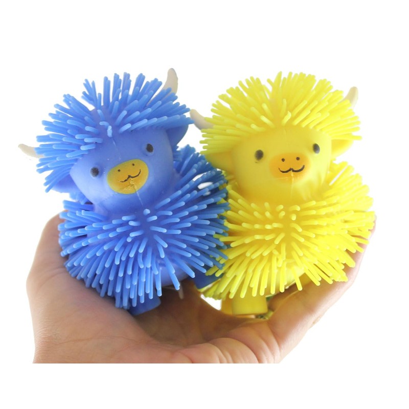 Set of 2 Puffer Highland Cow Fidget Toys - Air Filled Sensory Stress Balls Hairy Cute Long Hair Cows (Set of 2 Random Color Cows)