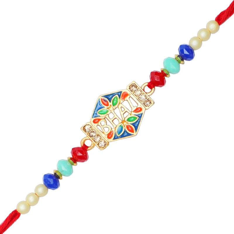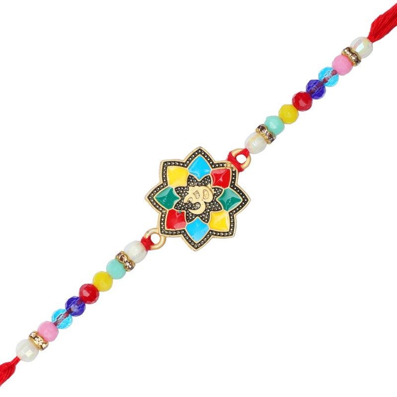 - ✨ Elegant, Handmade Traditional Rakhi Dora made with cotton thread, beaded with Multicolour Stone, Moti, Minakari and Kundan Pendant, Moli, Mouli Kalawa. Religious Elegant Rakhi Rakhee Made with love and Blessings from the artisan of India .