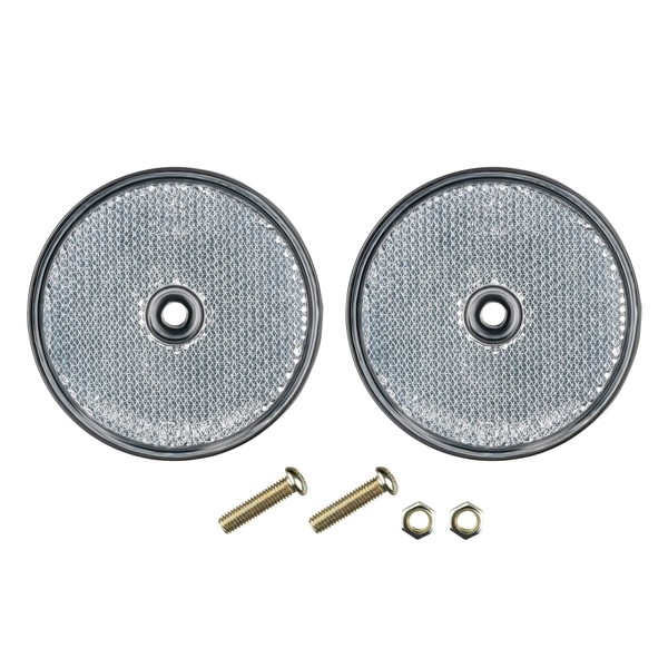 Set of 2 Reflectors Round White 70 mm Diameter Rear Reflector Cat's Eye Car Trailer E-mark with Screws