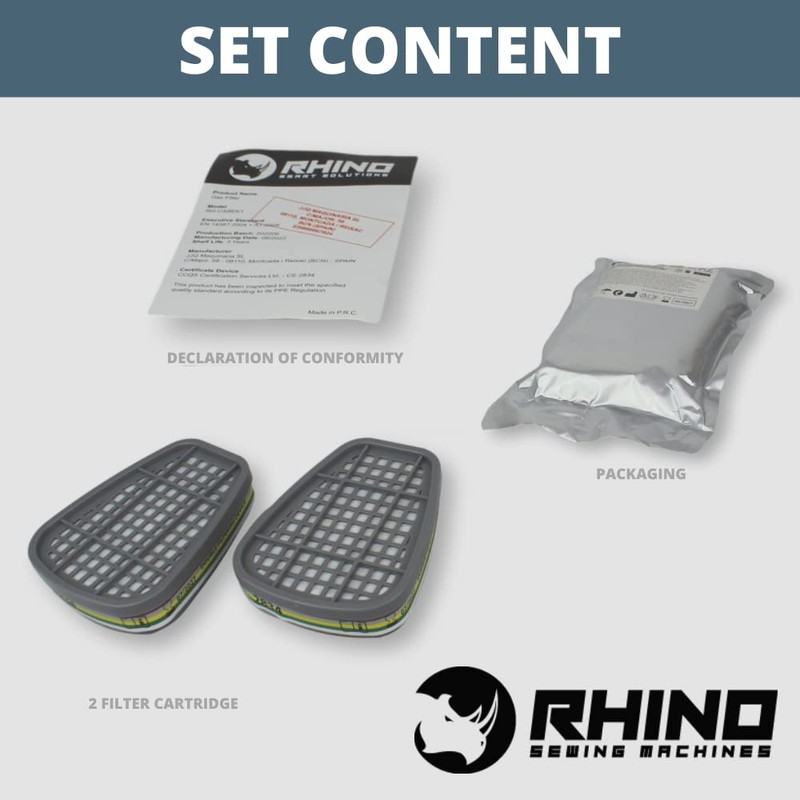 Set of 2 Rhino ABEK1 Activated Carbon Cartridges (Organic, Inorganic Vapours, Acid Gases and Ammonia) for RH-M101, RH-7011 and Other Masks