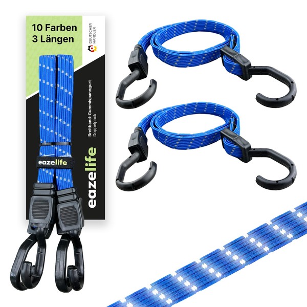 Set of 2 Rubber Tension Straps, Adjustable, Broadband Expander with Metal Hooks, Strong Resilient for Car, Bicycle and Outdoor Activities (10 Colours, 3 Lengths) (Ocean, 120 cm)