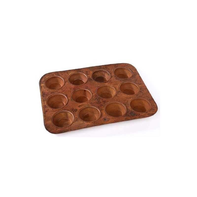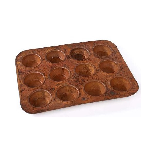 Set of 2 Rusty Primitive Metal Mini Muffin Pan. Size: Overall: 9-3/4" L x 7-1/2" W , Cups: 3/4" H x 1-3/4" Dia.