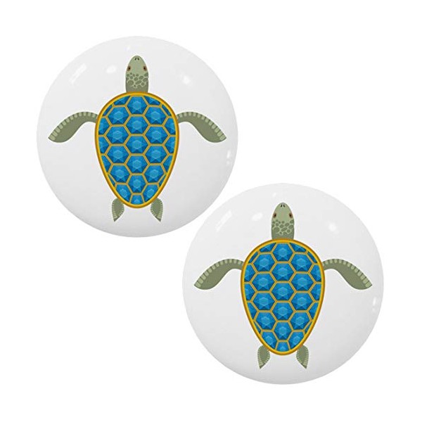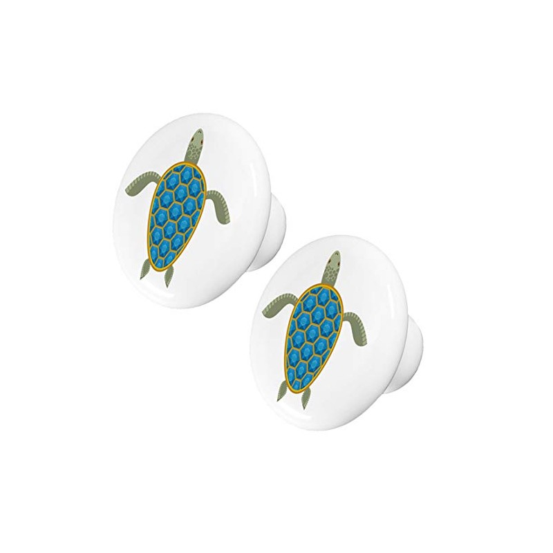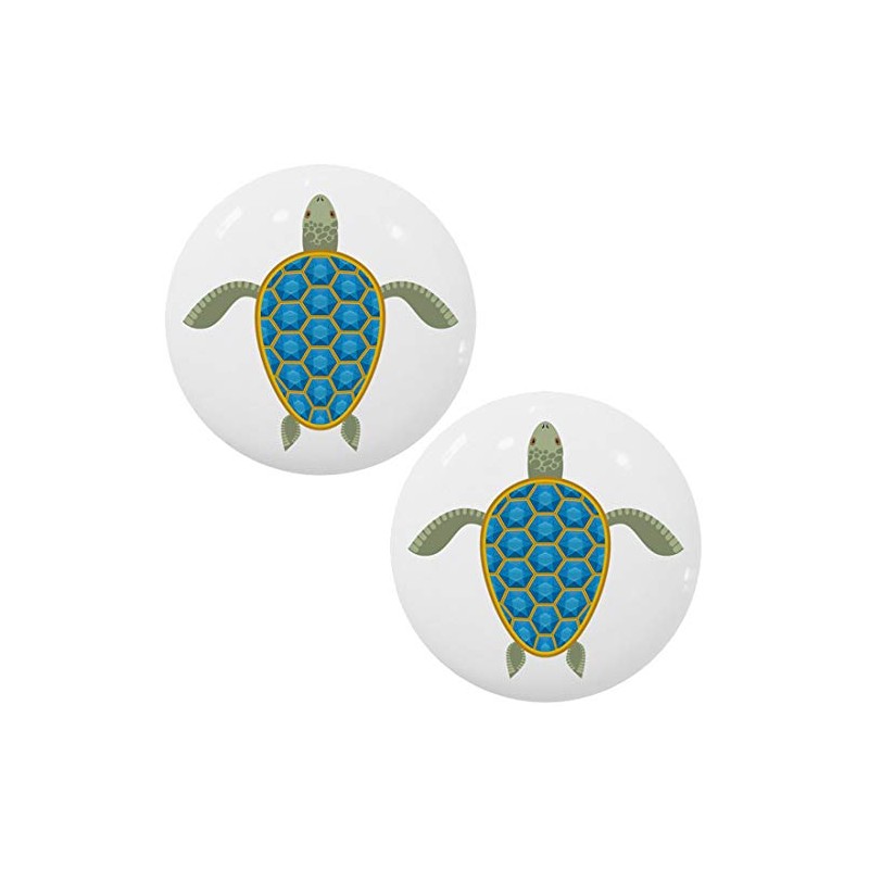 Set of 2 Sea Turtle with Blue Shell Ceramic Cabinet Drawer Knobs