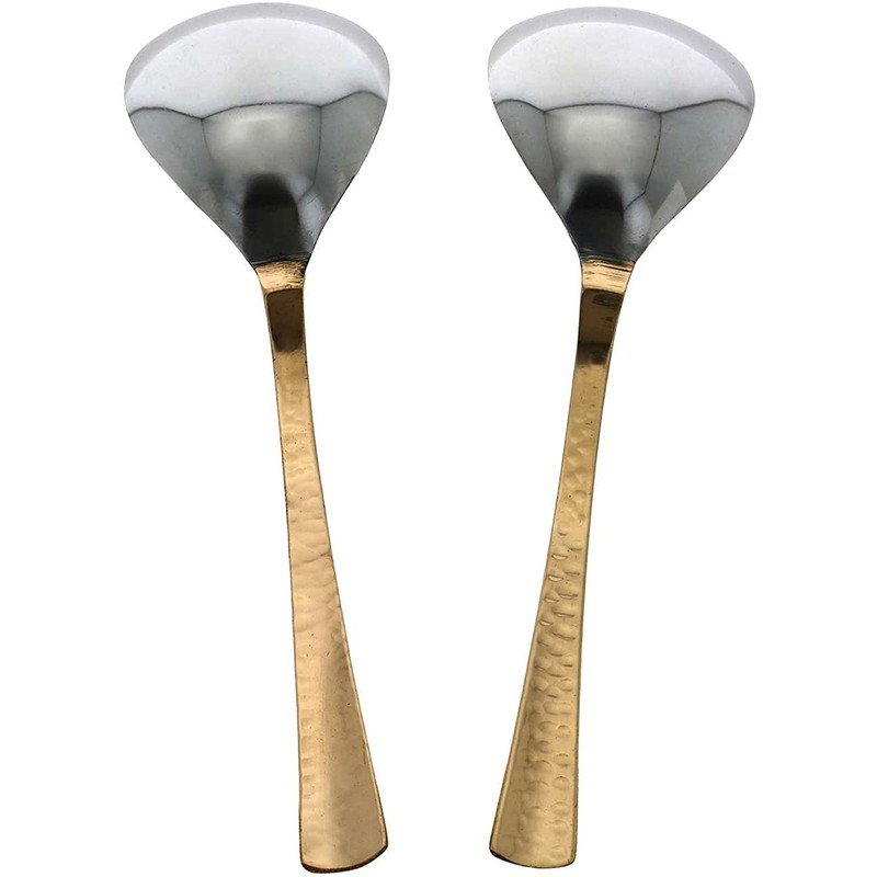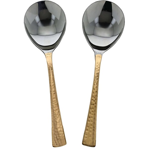 Set of 2 Serving Spoons Indian Dinnerware Serveware Stainless Steel Copper Handle Tableware, Copper Handle for Buffet Serving, Length 8.00 Inches, Copper Dinnerware Accessories