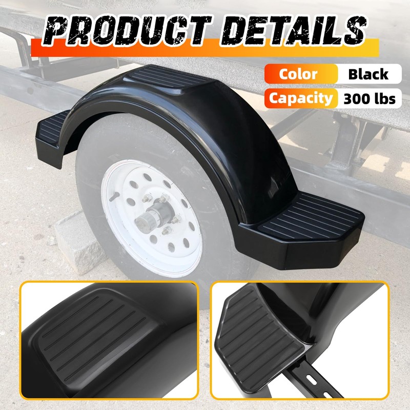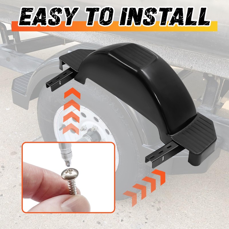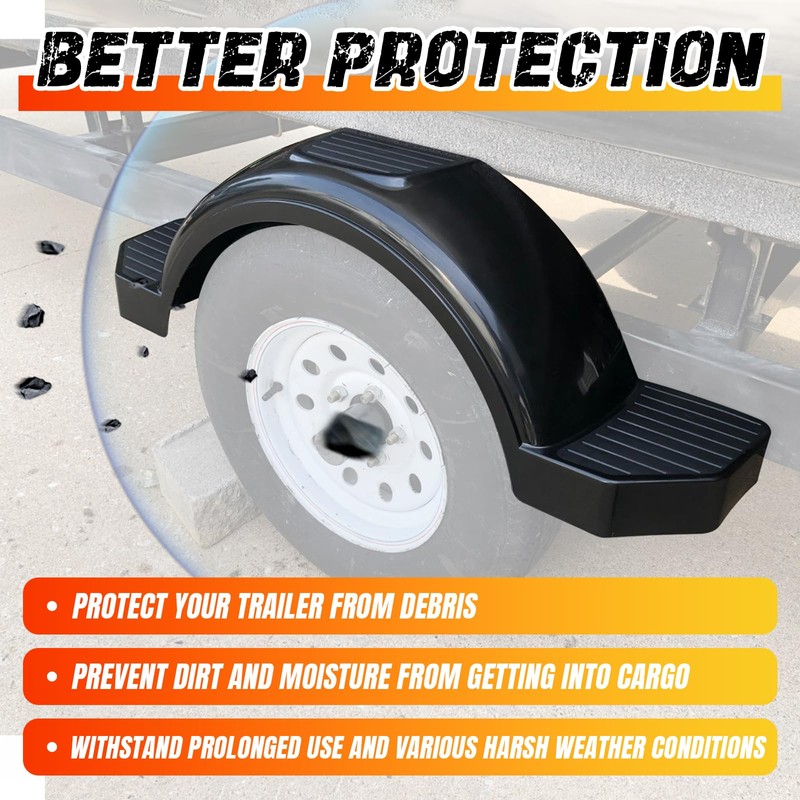 Set of 2 Single Axle Trailer Fenders 13" Wheels Tire Skirt Boat(Black)