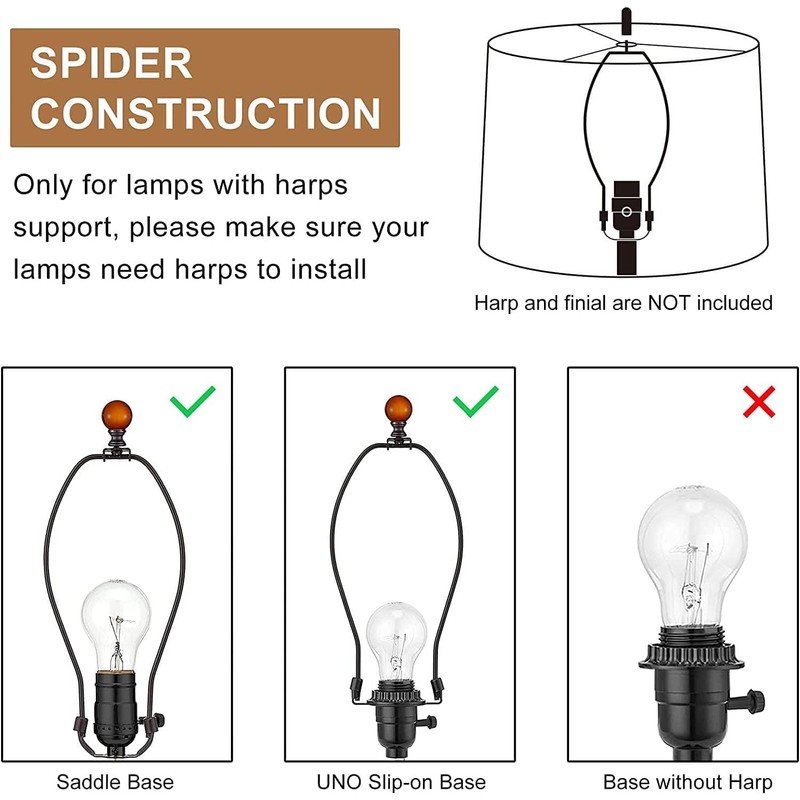 - ✨【Spider Fitter Type】This lampshade is designed with a spider fitter (nickel-plated) and is specifically designed for use with table lamps or floor lamps that have a harp support (harp not included). Therefore, before placing an order, please ensure that your current fixture is compatible with a spider-type fitter and has a harp. If it is not compatible, you will need to purchase a harp separately for installation.