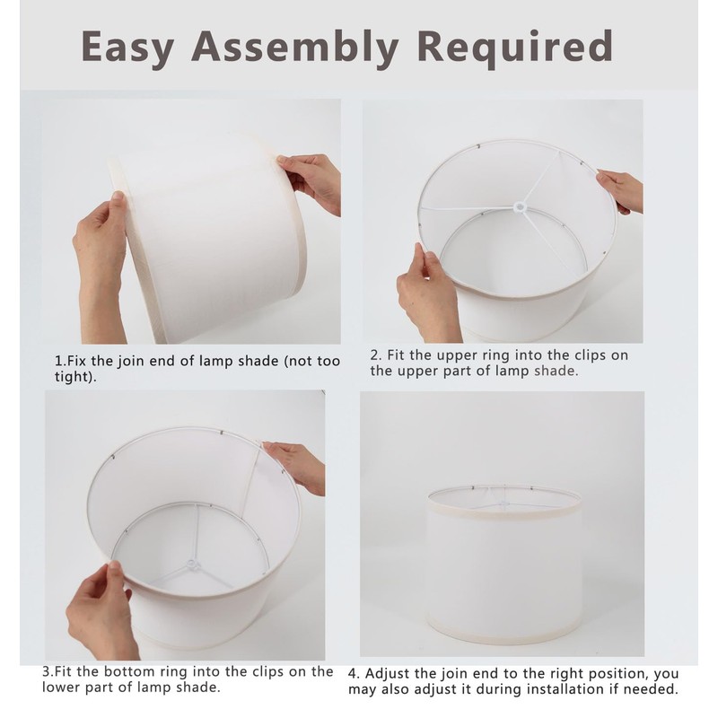- ✨【Simple Assembly Required】To ensure safe transportation and prevent dents, our lampshades are rolled up before packaging. Simply fit the wire ring into clips on both the upper and bottom of the shade. This process takes about 2-3 minutes. Please note that if you prefer not to assemble the product yourself, carefully consider before making your purchase.