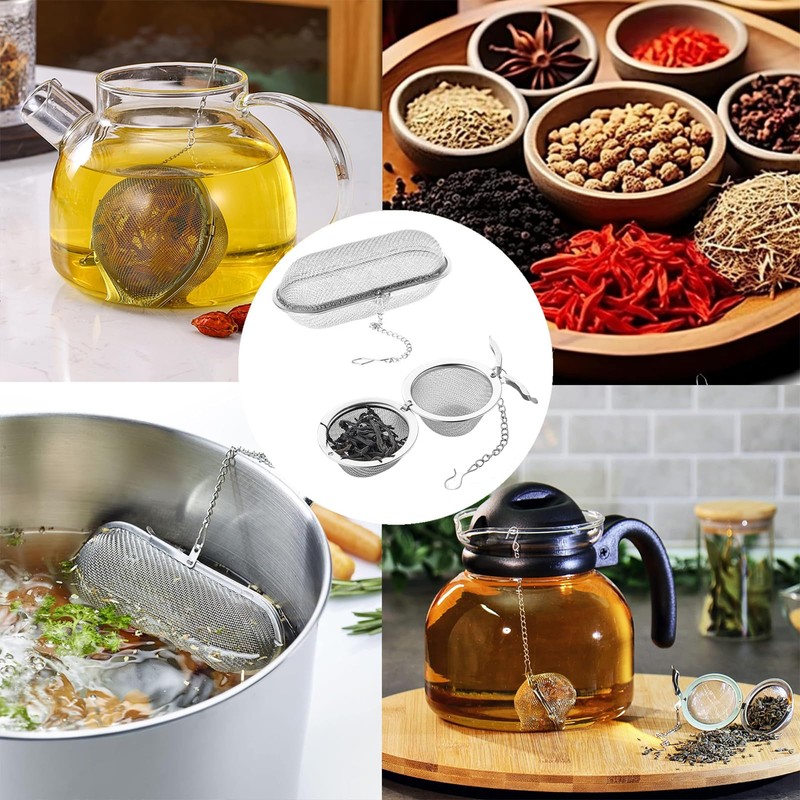 - Multifunctional filter options: This set contains 2 tea egg strainer shapes, namely the spherical and the other specially designed version. Whether you want to filter bulk tea or different spice mixes, our spice strainer and spice ball meet your needs and help you prepare your favourite tea perfectly. In addition, we also have the practical spice bags for cooking and tea infuser for loose tea, which make your preparation even more comfortable