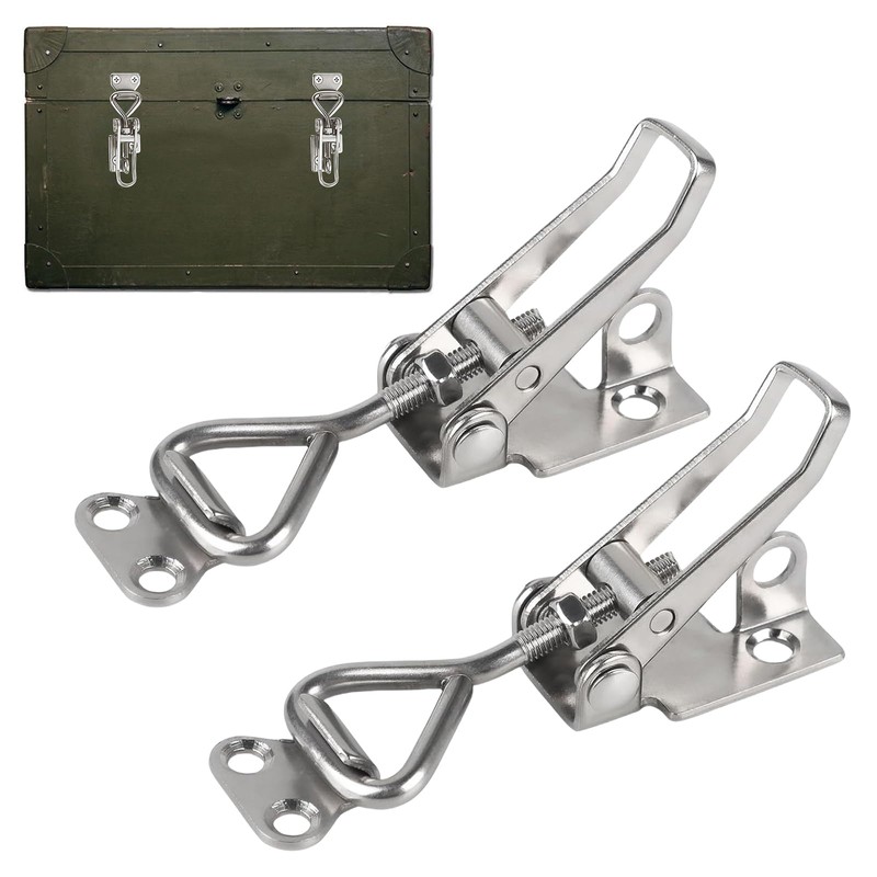 Set of 2 Toggle Latches Stainless Steel Set, Toggle Lever Tensioners, Box Closure, Rustproof, Adjustable Lever Lock, Lockable Box Closure, Cap Lock for Cupboard Door Boxes