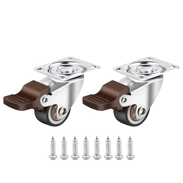 - Complete Kit: Our caster wheel set includes 2 swivel caster wheels with brakes. With 8 screws included, you'll find it easy to install these wheels on a variety of furniture pieces, home cabinets, laundry baskets, racks, and display shelves.