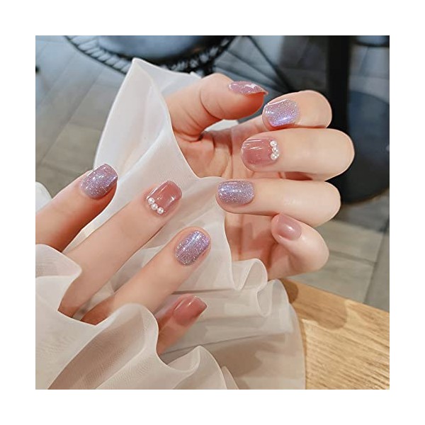 Set of 24 Nail Tips, Gentle Pink Pearl Nails