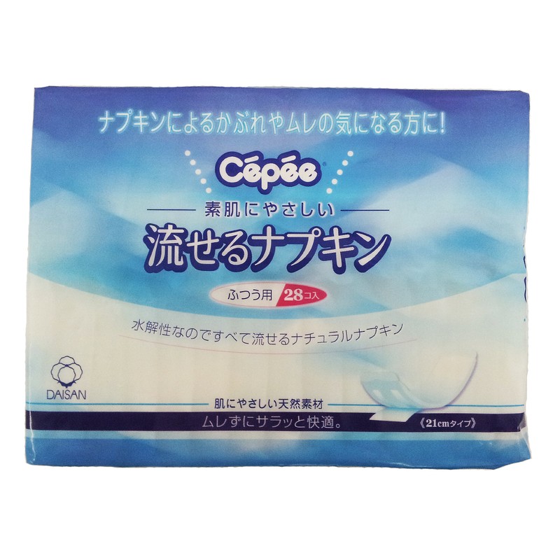 - Water soluble and flushable sanitary napkins. Safe for traveling and visitors. Natural materials are great for sensitive skin
