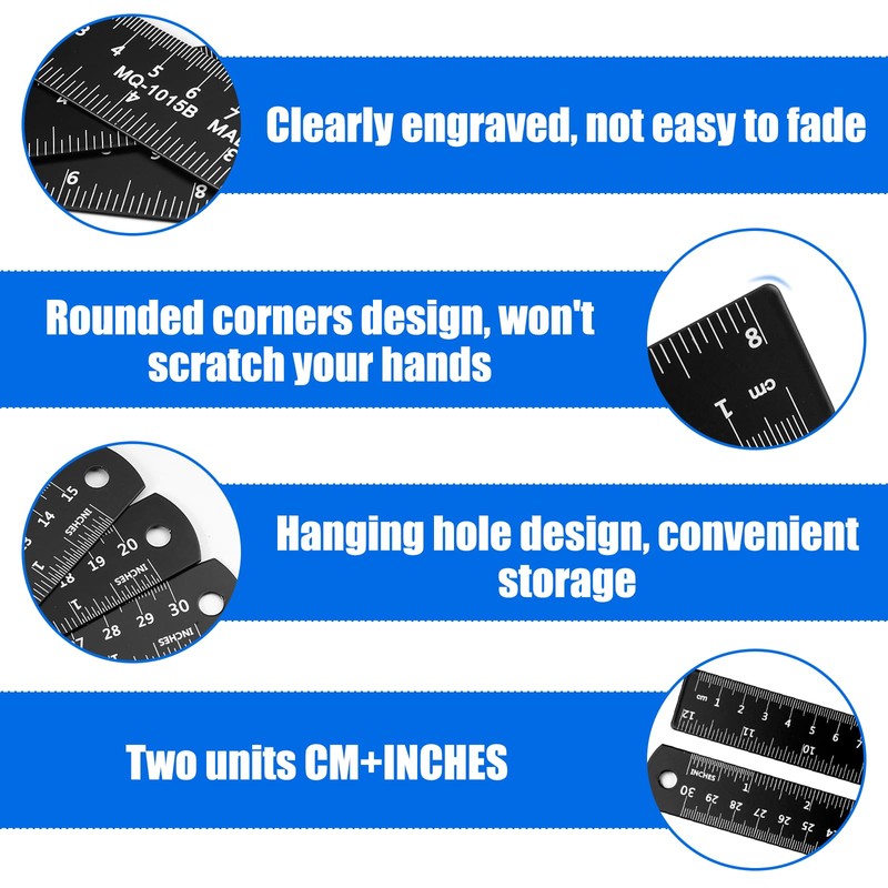 - Metal material: ruler set is made of high hardness aluminium alloy, robust and not easy to break, feels good, easy to use, metal material to ensure its durability, prevent rust and corrosion, can be used indoors or outdoors as desired.