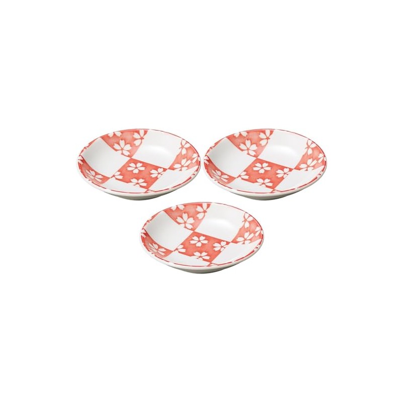 Set of 3, Checkered Cherry Blossom (Red) 3.0 Plates, 3.9 x 0.8 inches (10 x 2 cm) | Small Plates