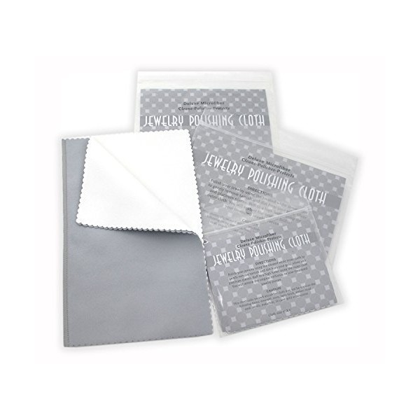 Set of 3 Deluxe Microfiber Jewelry Polishing Cloths in Three Convenient Sizes (Gray)