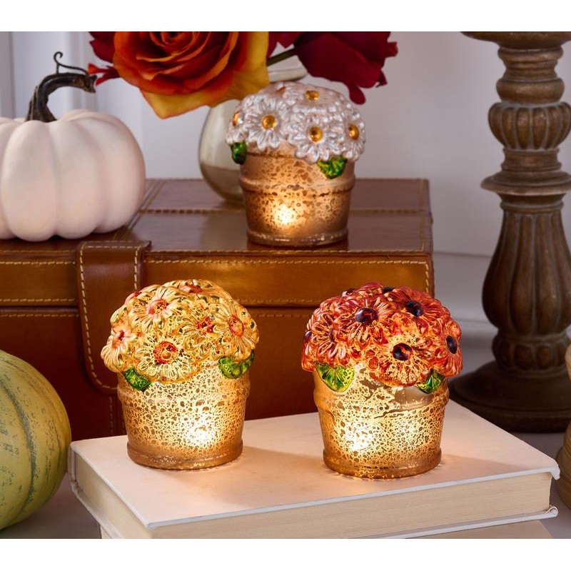 Set of 3 Illuminated Mercury Glass Mums by Valerie