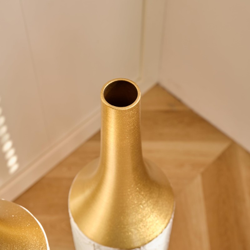 - Elegant Design: The set of 3 glazed metal vases feature a white finish with a modern style, adding a touch of sophistication to your home decor. Purchase to elevate your interior aesthetic.