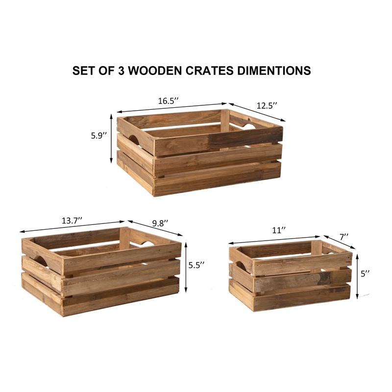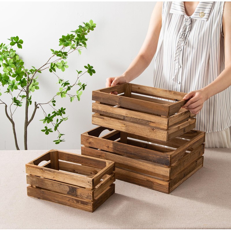 - STURDY CONSTRUCTION - Crafted from solid reclaimed wood, these wooden crates are sturdy and durable. The cut-out handles make them easy to carry around. They are stackable and nested for easy storage and save your space.